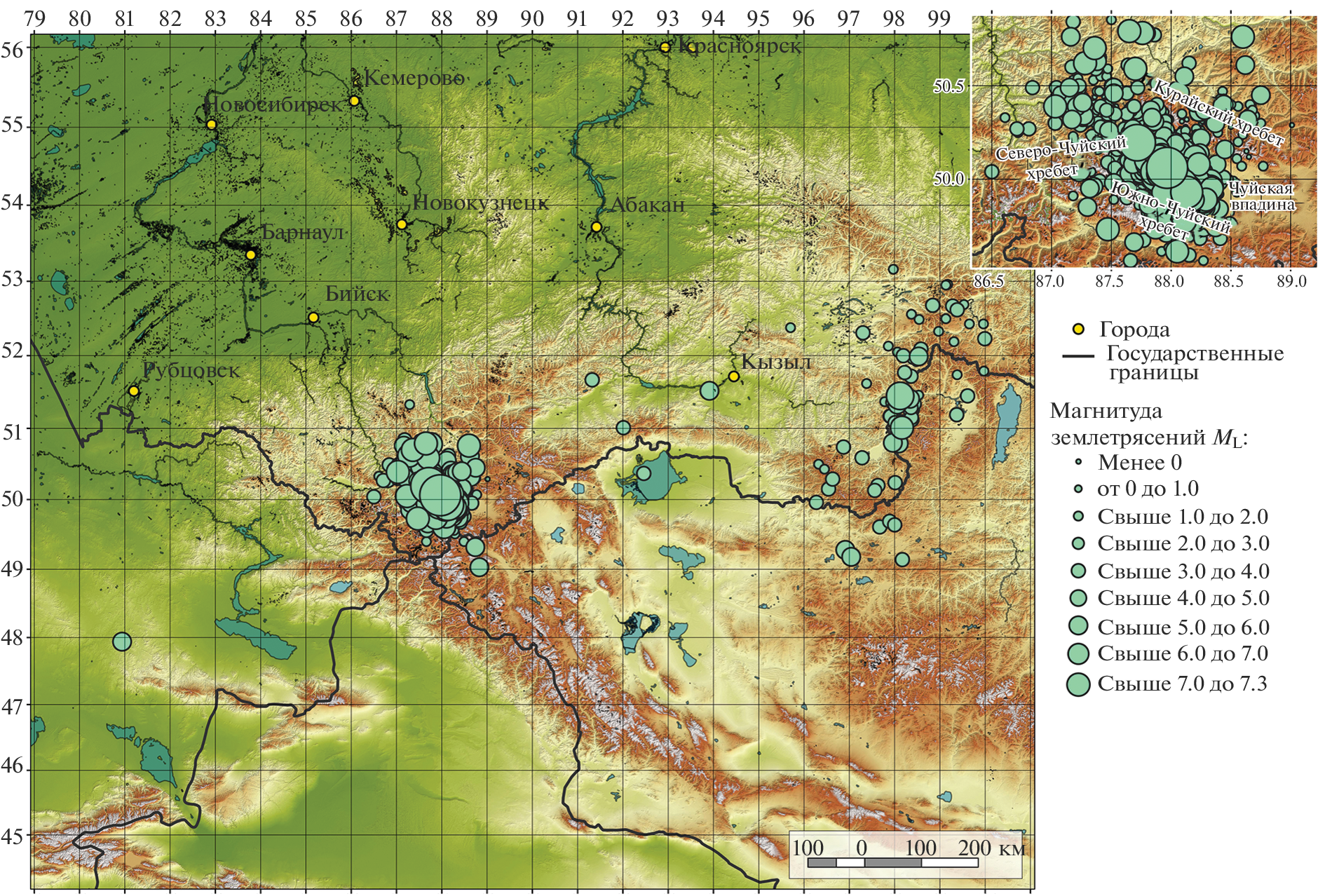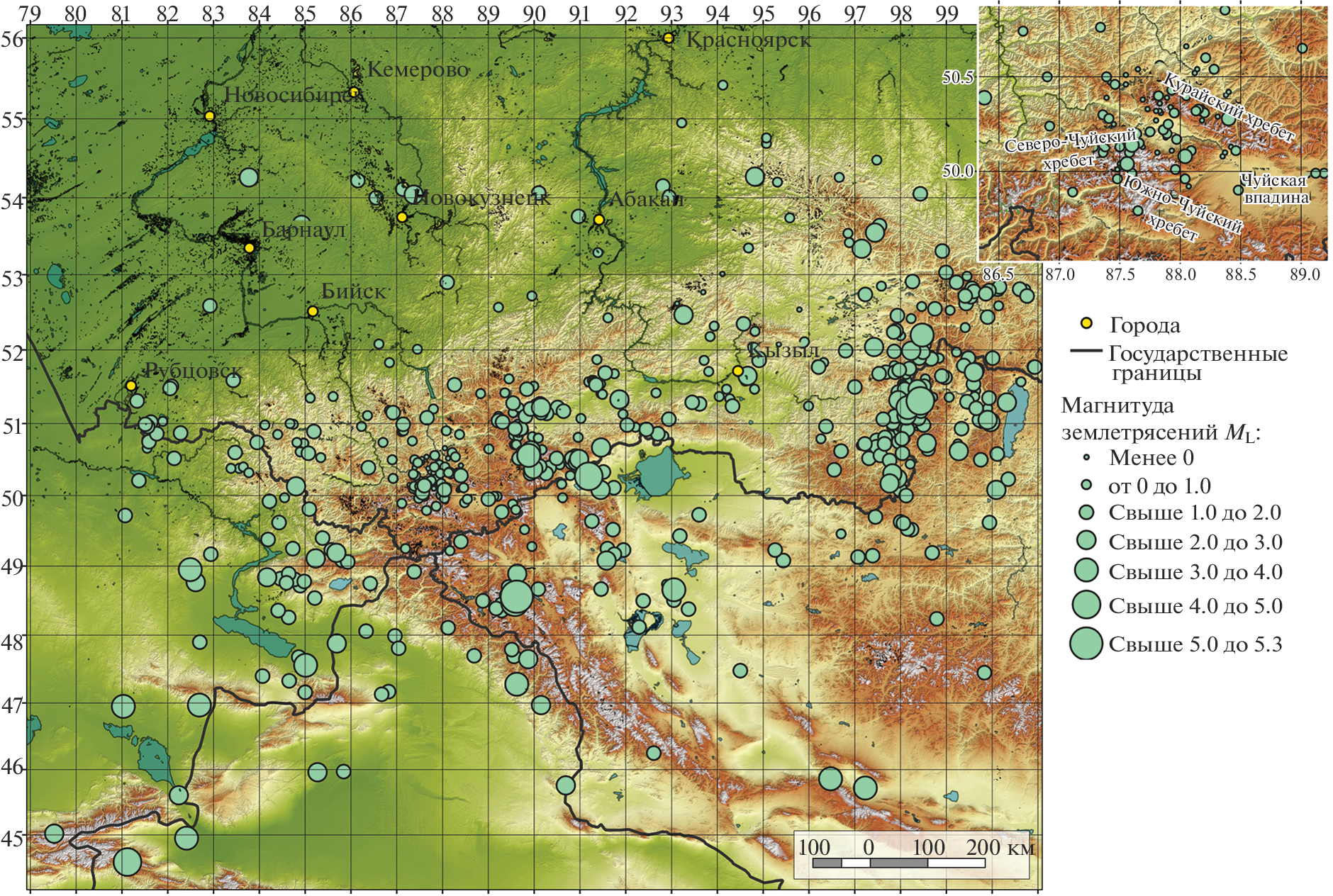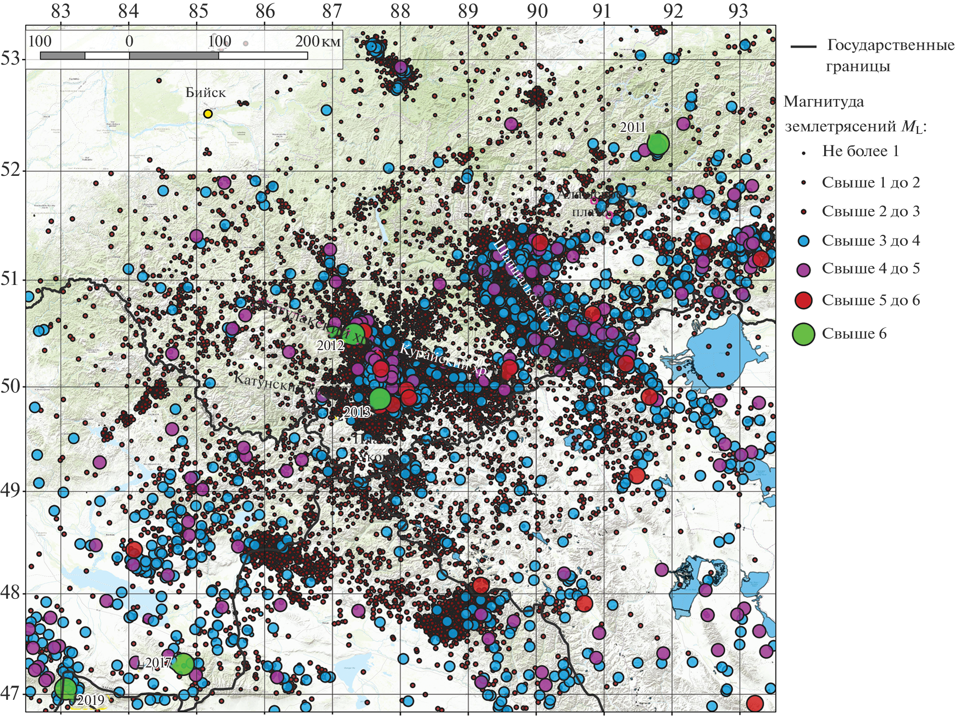 - Еманов А.Ф., Еманов А.А., Лескова Е.В., Фатеев А.В. Об изменении сейсмического режима в Чуйско-Курайской зоне Горного Алтая в 1963‒2016 гг. // Интерэкспо ГЕО-Сибирь. 2017. Т. 2. № 3. С. 41–45.