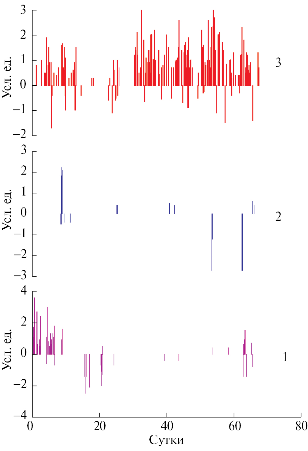 2) Длительность импульсов в среднем составляла 300 с (5 мин). Данные GPS представлены ежесуточными значениями (1440 мин).