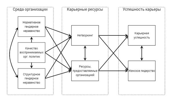 Анализ феноменологии гендерного неравенства показывает, что женщины ограничены в доступе к властным ресурсам организации, если не процедурно, то психологически: они замечают, что коллеги-мужчины не устанавливают с ними привычных рабочих связей [31]. Особые стратегии нетворкинга помогают нивелировать роль гендера в карьерном развитии [6], но возможности нетворкинга малодоступны для групп меньшинства [16]. Женский пол считается препятствием для формирования социального капитала, необходимого для получения преимуществ в продвижении по карьере [22]. Поскольку для карьерного продвижения и карьерной успешности важно развитие профессиональных связей, дающих возможности и ресурсы, важным аспектом карьерной успешности должны быть механизмы, связанные с возможностями нетворкинга.