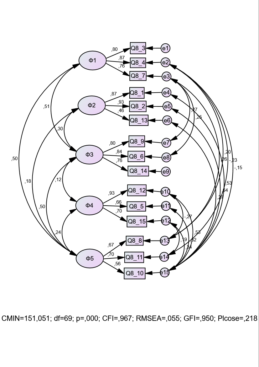 Ф2 | <--> | Ф5 | 0.144 | 0.048 | 2.977 | 0.003 |