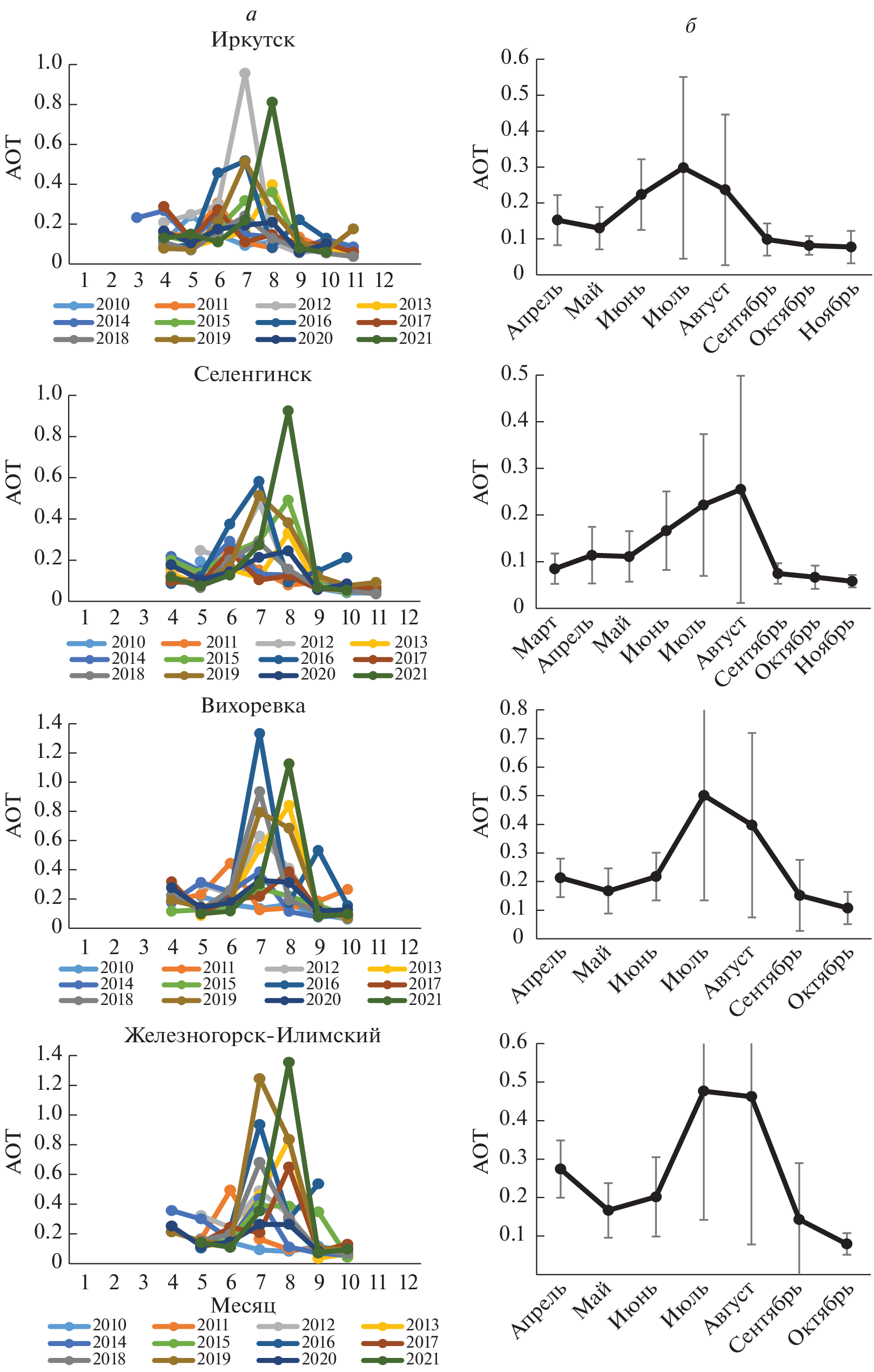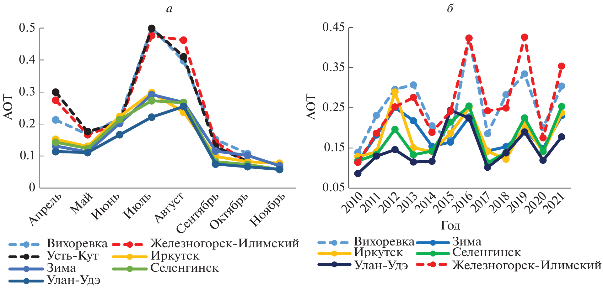 - Тащилин М.А., Яковлева И.П., Сакерин С.М. Пространственно-временные вариации аэрозольной оптической толщи в Байкальском регионе// Соврем. пробл. ДДЗ из космоса. 2021. Т. 18. № 1. С. 219–226. https://doi.org/10.21046/2070-7401-2021-18-1-219-226