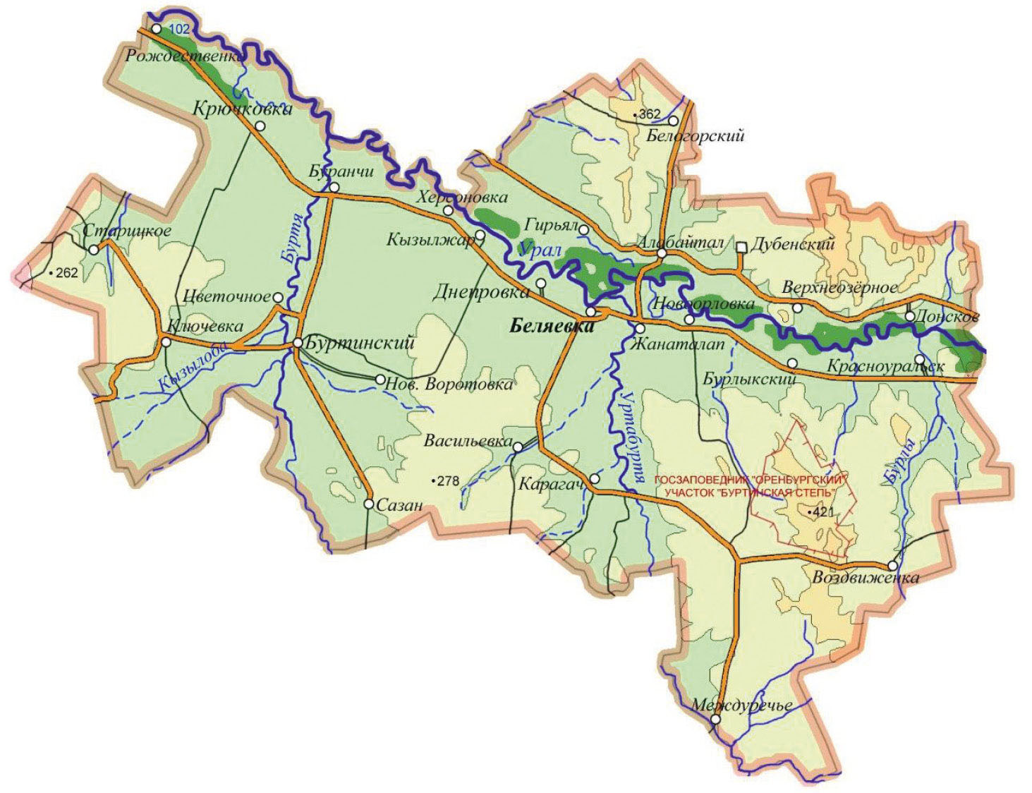 Рис. 1. Карта Беляевского района Оренбургской области.