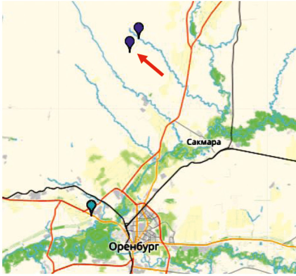 Рис. 6. Расположение станции RUSWET-AGRO Orenburgskaya_#1 на карте Оренбургской области.