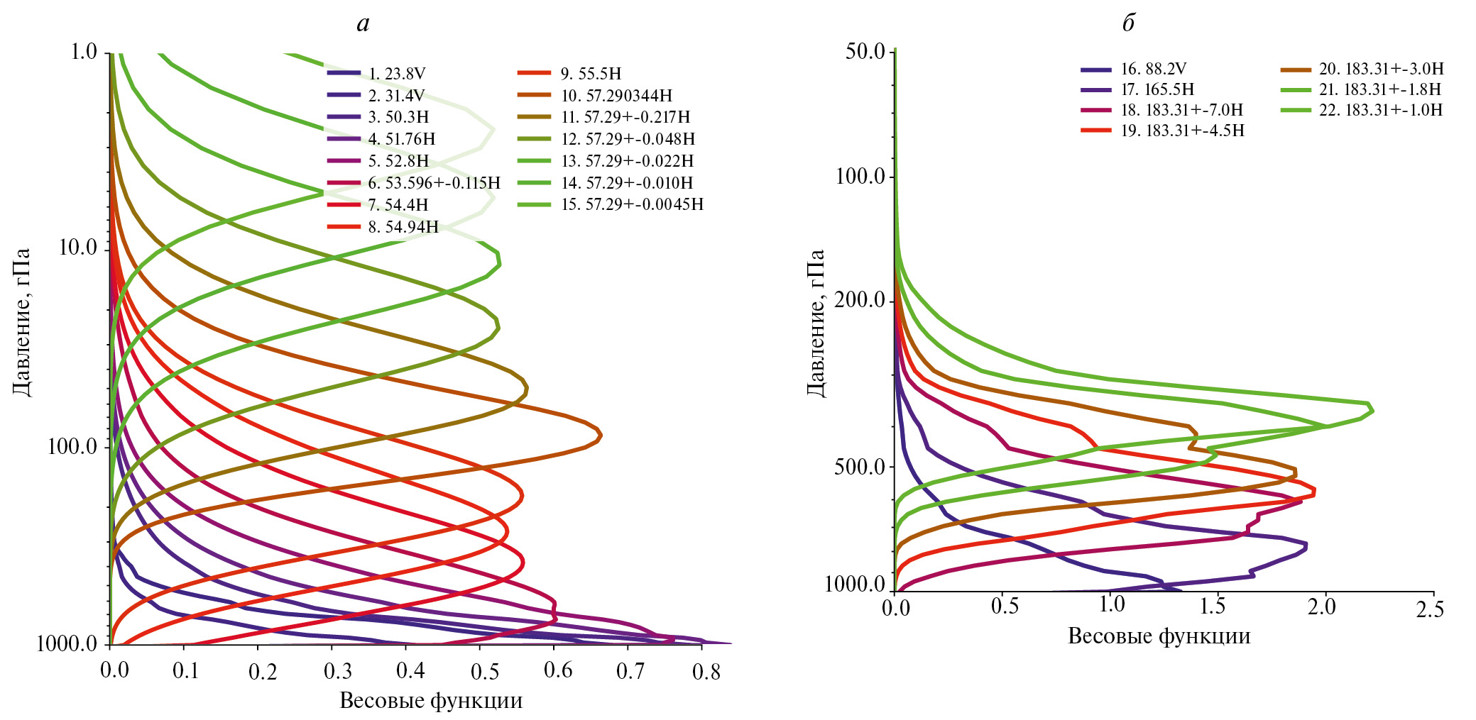 Рис. 1. Весовые функции спектральных каналов радиометра ATMS.