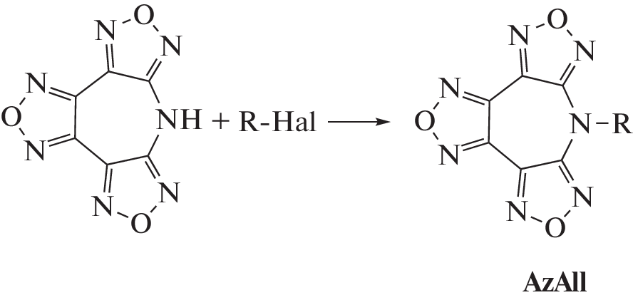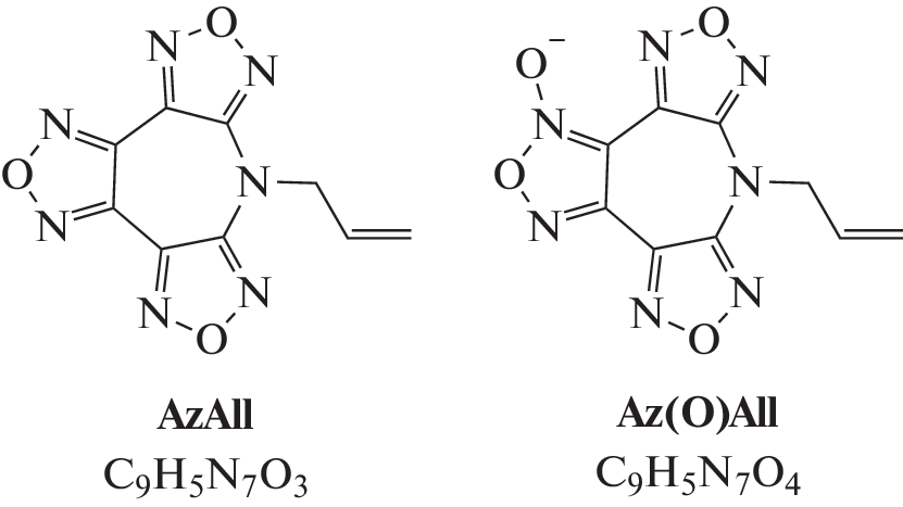 The synthesis of new energy-intensive compounds, 7-allyl-7H-trifurazano[3,4-b:3',4'-f:3",4"-d]azepine (AzAll) and 7-allyl-7H-difurazano[3,4-b:3',4'-f]furoxano[3",4"-d]azepine (Az(O)All) is described for the first time. The main parameters of the crystal lattice are determined by X-ray diffraction analysis and experimental data on the heats of combustion and enthalpies of formation of these two compounds are obtained. A thermodynamic analysis of the effectiveness of these compounds as components of solid composite propellants and gas-generating fuels is carried out. It is shown that the compounds under consideration have no prospects for use in solid composite propellants, but they are very effective as potential dispersants of solid fuels for gas generator engines.