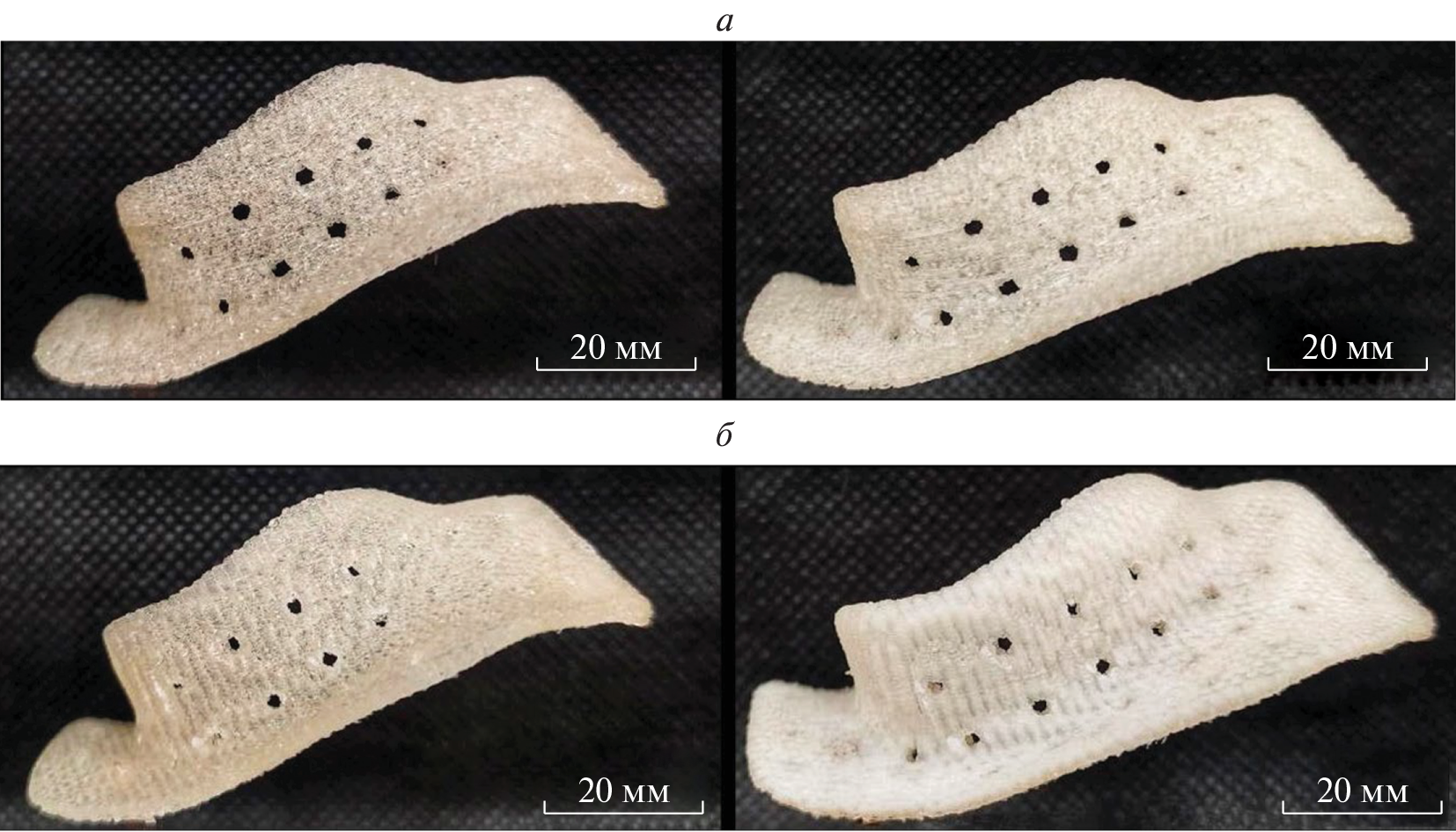 surface structure (gyroid), cube, grid, and honeycomb) and shape changes of individual implants by