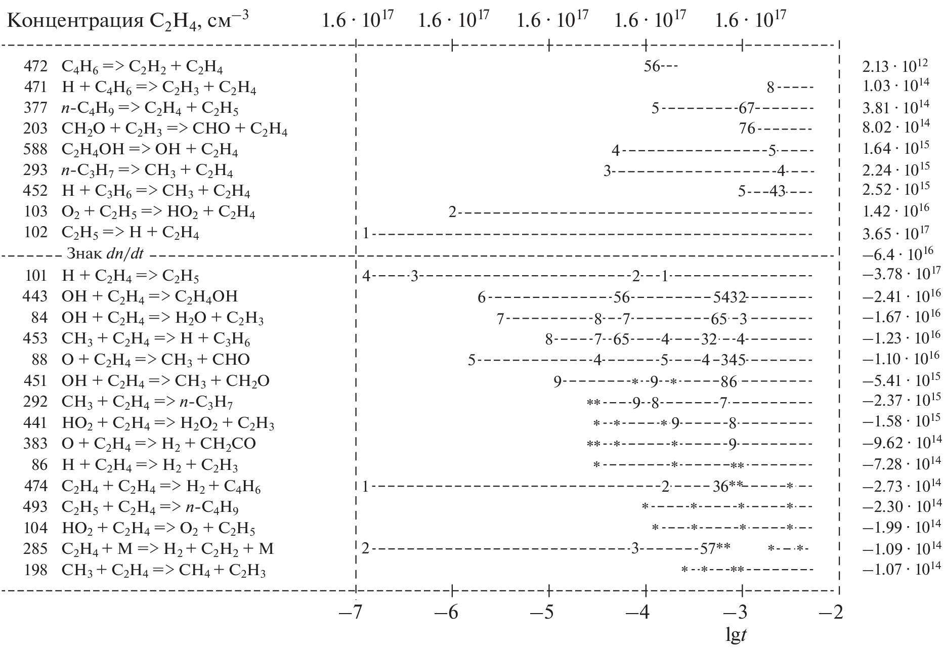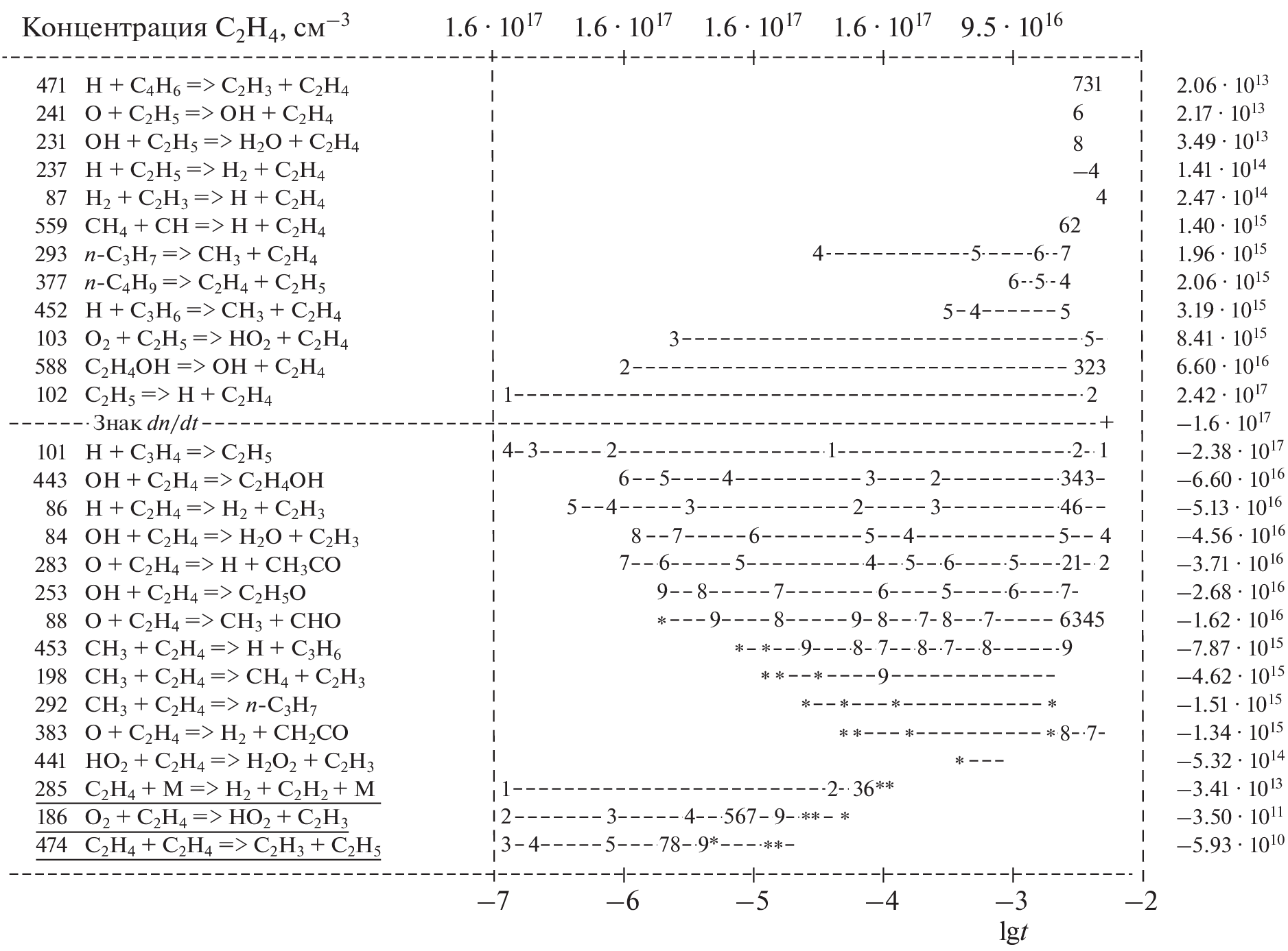C2H4–O2–Ar and C2H4-air mixtures. The kinetic scheme under consideration will further be applied in