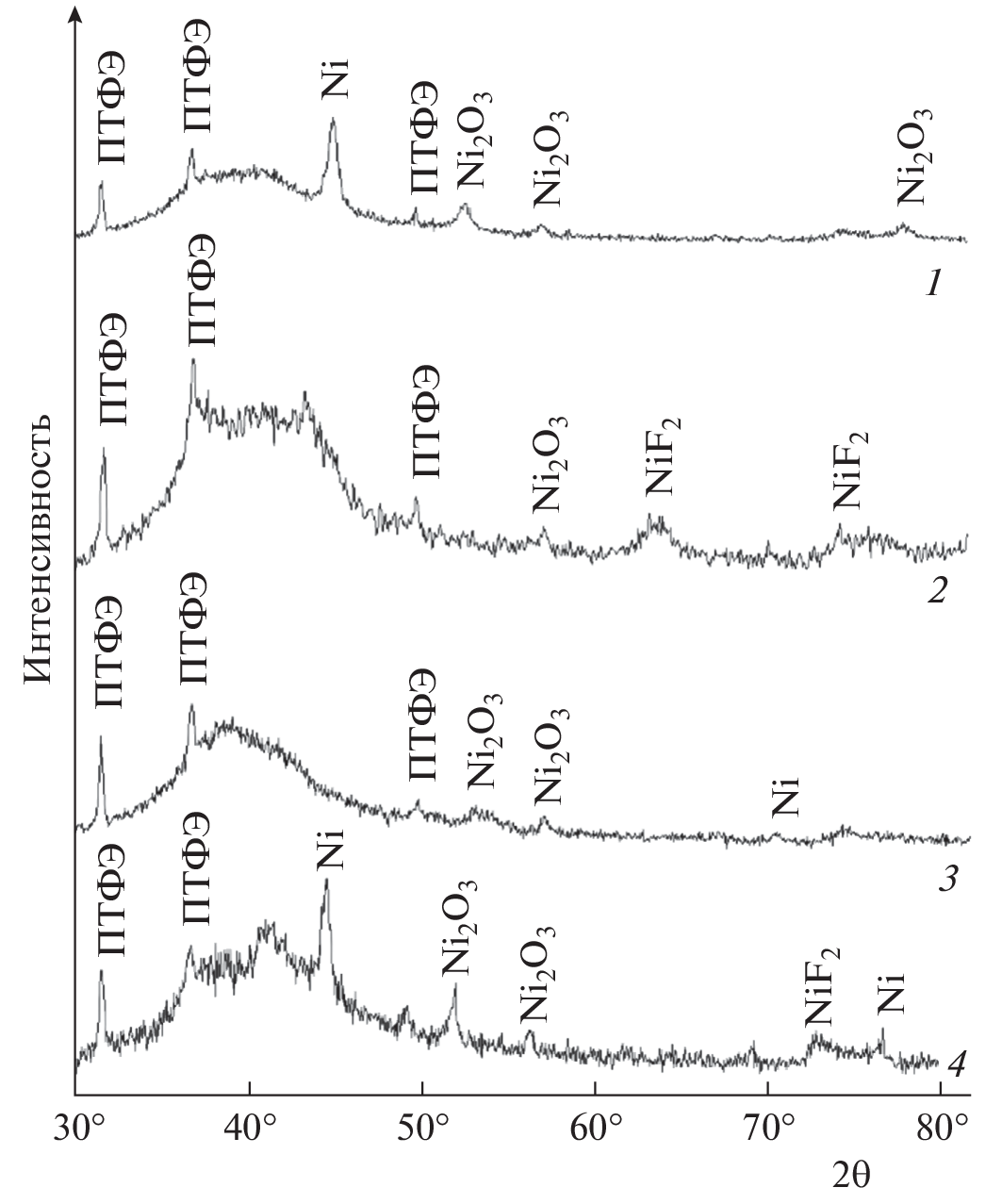 the system of magnetic nickel-containing nanoparticles in the samples at room temperature is in a ferromagnetic