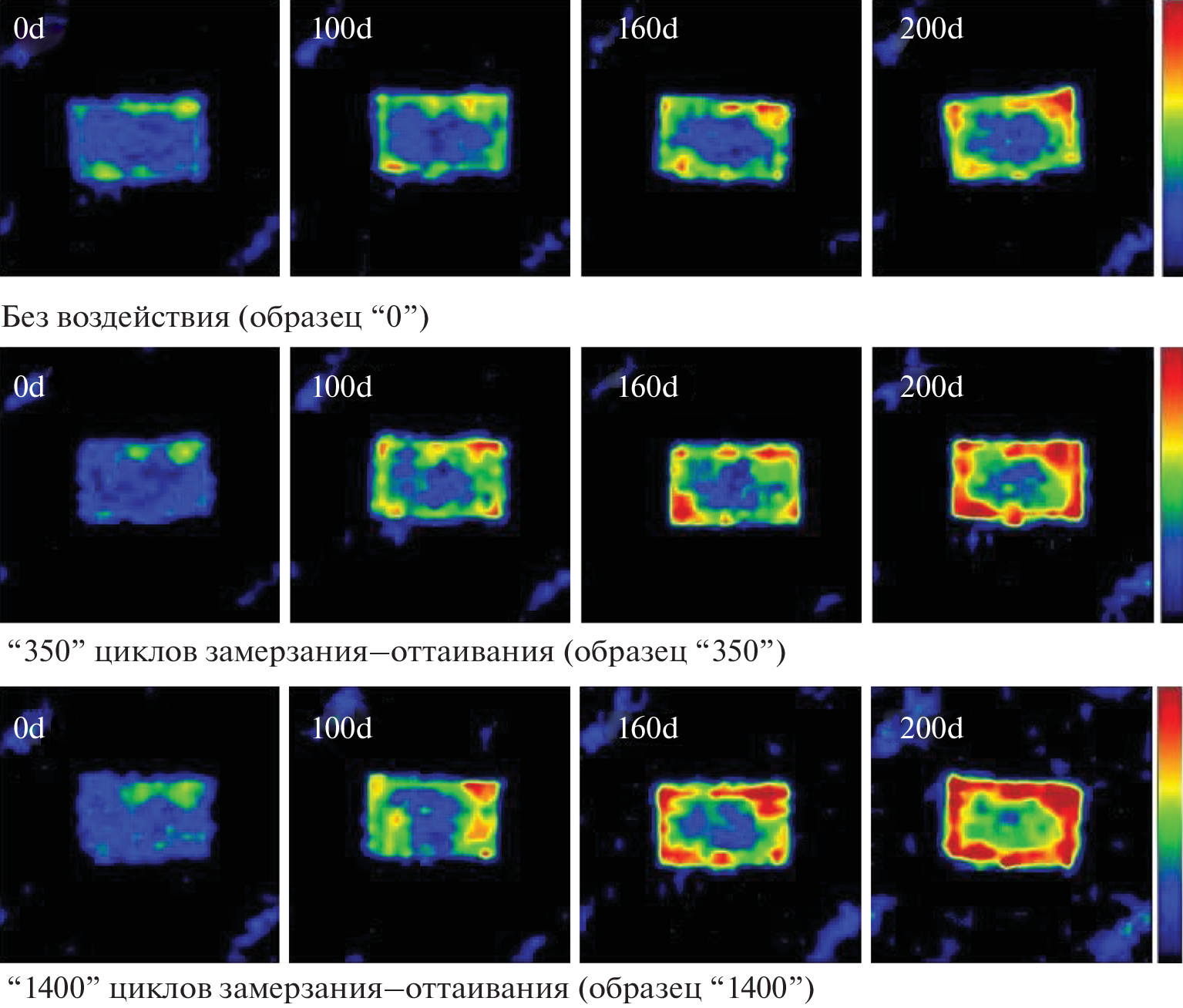 in the samples and a significant accumulation of free water in the areas of destruction and adjacent layers in