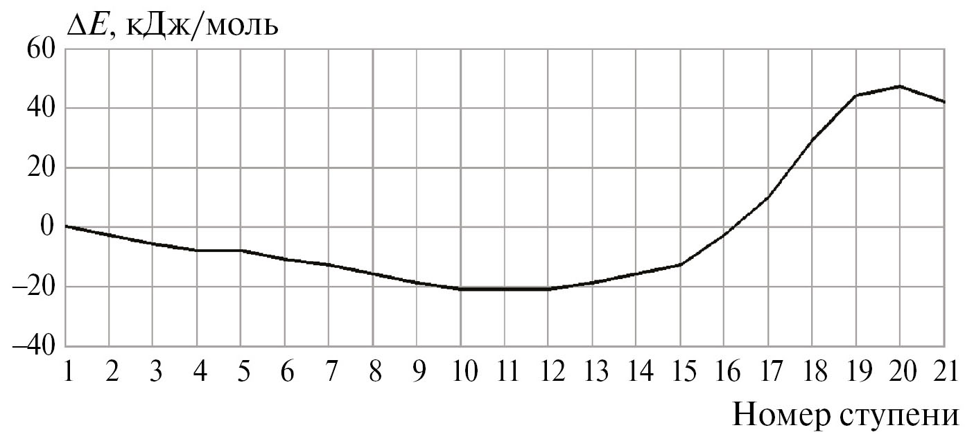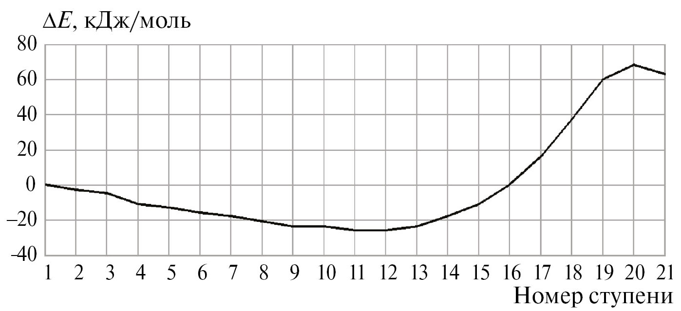 Рис. 6. Изменение общей энергии (ΔE) вдоль координаты реакции взаимодействия комплексного катализатора AlCl2C2H5–фенол (Cα) с 2,3,3-триметилбутеном-1.
