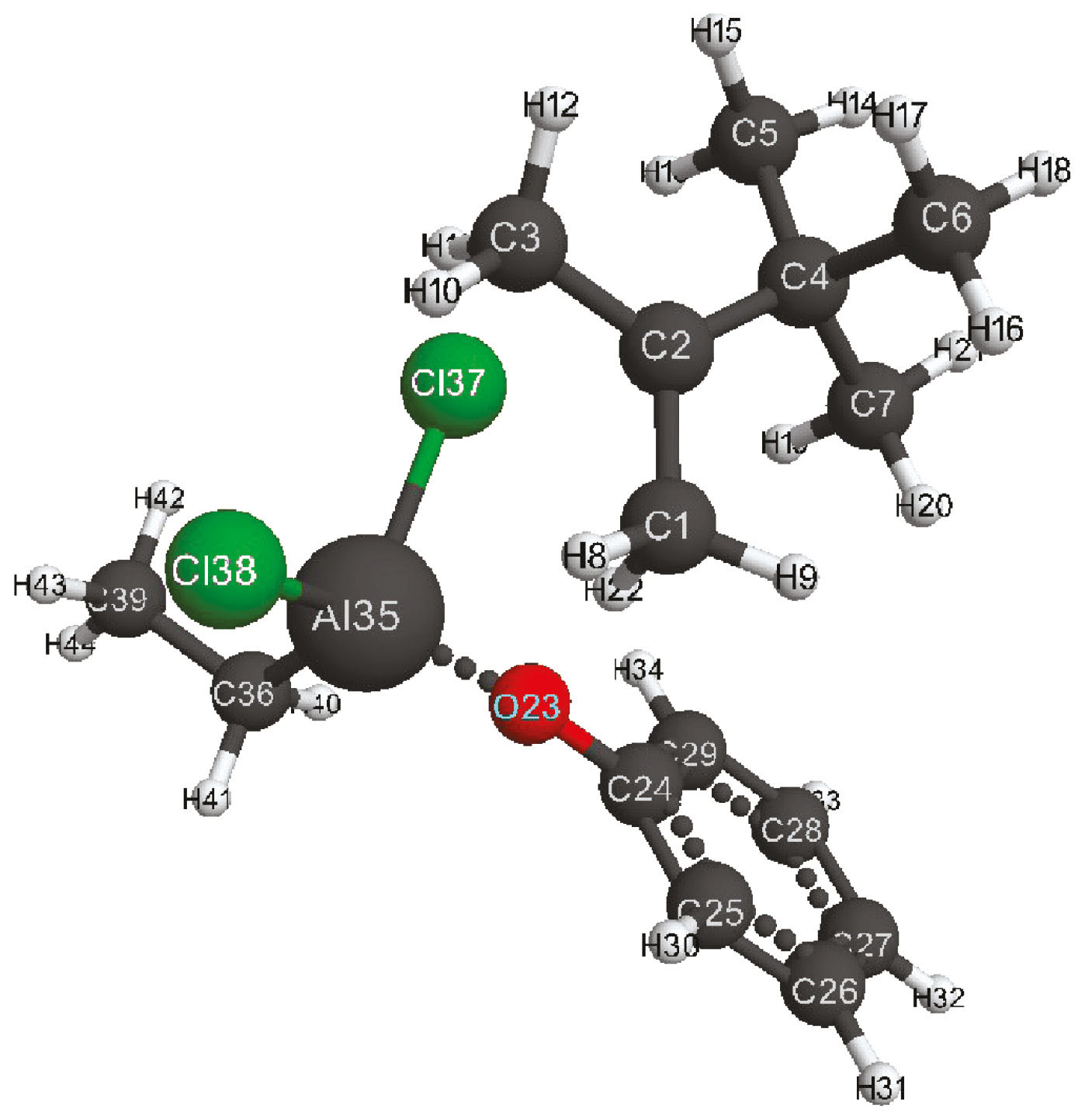 Рис. 5. Конечная атомно-молекулярная структура взаимодействия комплексного катализатора AlCl2C2H5–фенол (Cα) с 2,3,3-триметилбутеном-1 (АЦ).
