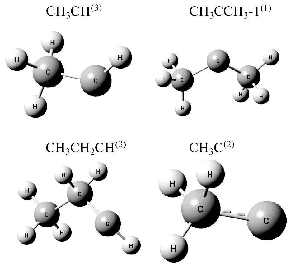 В связи с этим целью настоящего исследования было, используя вычислительные методы [24–32] установить возможные промежуточные соединения, образующиеся при изомеризации и распаде пропильных радикалов, и получить информацию об их структуре и термохимических параметрах.