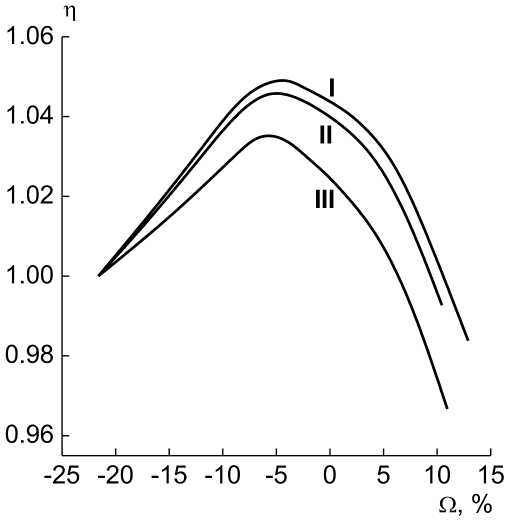 Следует подчеркнуть, что выбранные ВВ-окислители обладают высокой плотностью и относительно высокой энтальпией образования. Результаты расчетов МС композиций с октогеном иллюстрирует рис. 4, из которого следует, что добавление ВВ-окислителей повышает метательную способность октогена. Наибольший прирост соответствует веществу I (на ~5% по скорости пластины при оптимальном соотношении концентраций ВВ). Такая смесь по МС превосходит состав БТНЭН/октоген (см. рис. 1). На рис. 5 представлены зависимости МС от КБ бинарных смесей с октогеном. Обращает на себя внимание тот факт, что оптимальное содержание компонентов соответствует небольшому по абсолютной величине отрицательному КБ.