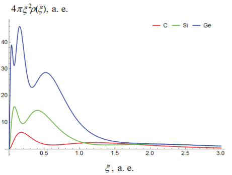Рис. 2. Распределение радиальных электронных плотностей атомов.