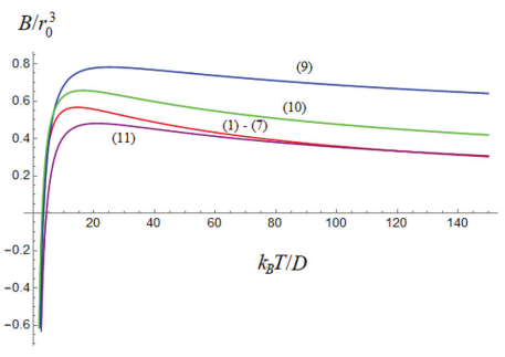 Полученными результатами можно воспользоваться для расчета второго вириального коэффициента [35, 36]: