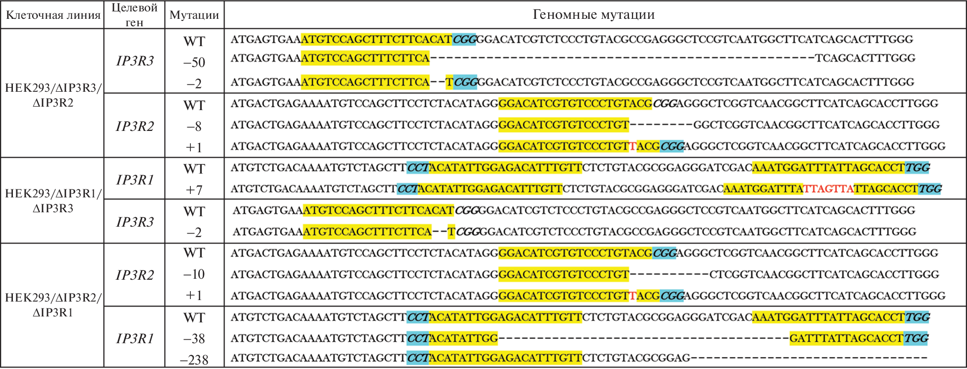 Many agonists regulate cellular functions through surface receptors coupled by the phosphoinositide cascade to Са2+ mobilization. In unexcitable cells, the generation of Са2+ signals relies largely on Са2+ release from из Са2+ store localized in the endoplasmic reticulum (ER). In this system, IP3 receptors (IP3Rs), which are intracellular IP3-gated Са2+- channels, mediate controllable Ca2+ release from Ca2+ store in response to cell stimulation. A variety of factors embarrass both the analysis of a specific role for IP3Rs in cell physiology and detailing their regulatory mechanisms. Firstly, three genes encode IP3Rs, while cells usually express two or even all of them. Moreover, different IP3R isoforms are under control of distinct mechanisms. Yet, isoform-specific antagonists of IP3Rs have not been identified yet. Cell lines that express a single isoform appear to be an effective cellular model for studying regulatory mechanisms, pharmacology, and physiological role of I-P3R subtypes. Here we employed the CRISPR/Cas9 technology to inactivate genes of IP3Rs in cells of the HEK-293 line, which express all three isoforms. Several monoclones of genetically modified HEK-293 were obtained, and those containing biallelic inactivation mutation in two IP3R genes were identified. Finally, three monoclonal cell lines, each containing the only functional IP3R isoform, were generated. These cellular models can be used to evaluate a role for IP3R of a particular subtype in agonist-induced Ca2+ signaling as well as for the analysis of their regulatory mechanisms.