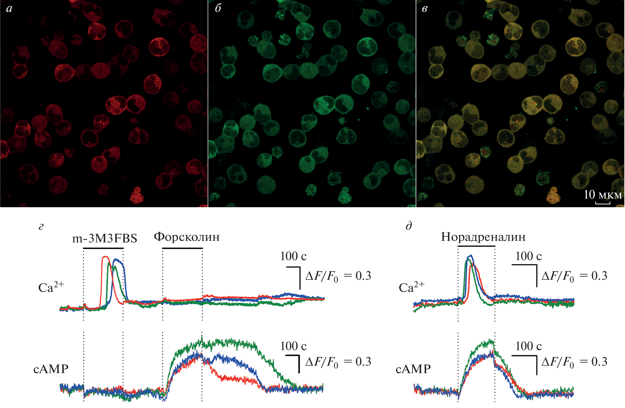 Monoclonal Line of Cells Co-Expressing Genetically Encoded Sensors of cAMP and Ca2+