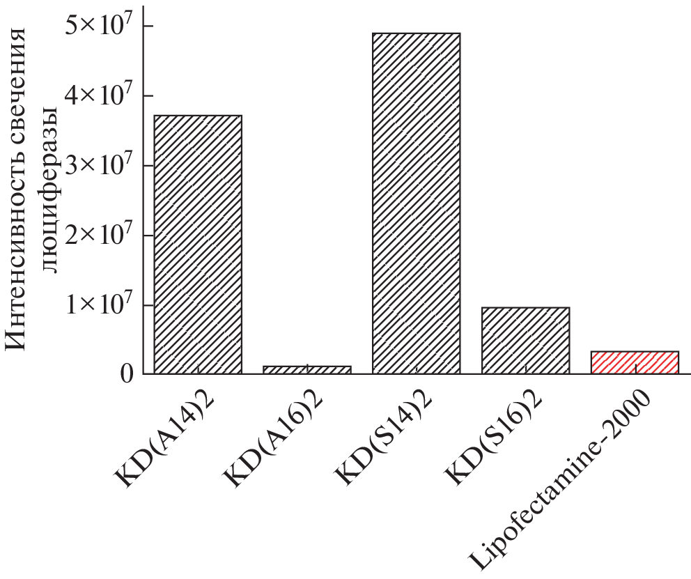 This work aimed to produce mixed liposomes based on natural amino acids as vehicles for delivery of anticancer drugs and nucleic acids. Liposomes were formed from cationic lipids based on L-alanine and L-serine, a kerase-forming lipid based on L-ornithine, and phospholipids phosphatidylcholine (PC) or 1,2-dioleoyl-sn-glycero-3-phosphoethanolamine (DOPE). For the developed agents, particle size, zeta potential, and stability were determined, and the biological activity was studied on the MCF-7 and HEK 293 cell lines. Liposomes based on L-serine demonstrated the ability to accumulate in the endoplasmic reticulum of cells within 1 h, and their transfection activity significantly exceeded that of the commercial drug Lipofectamine-2000. At the same time, the proposed system had a slight toxic effect (IC50, 0.475 mg/mL and the safe working concentration, 0.24 mg/mL).