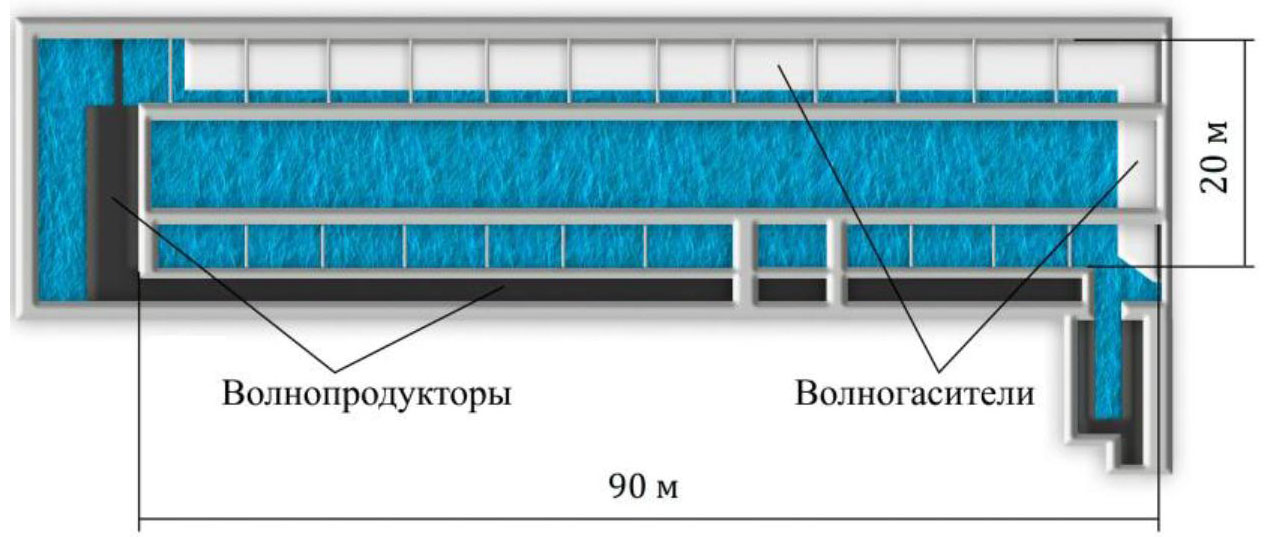 Fig. 9. Scheme of the experimental wave basin in Krylov State Research Center
