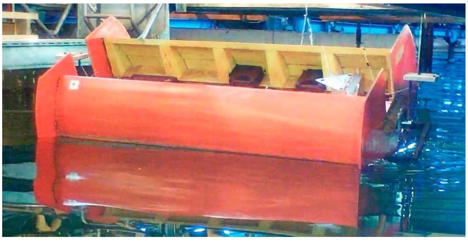 Рис. 7. Модель, испытанная в волновом опытовом бассейне