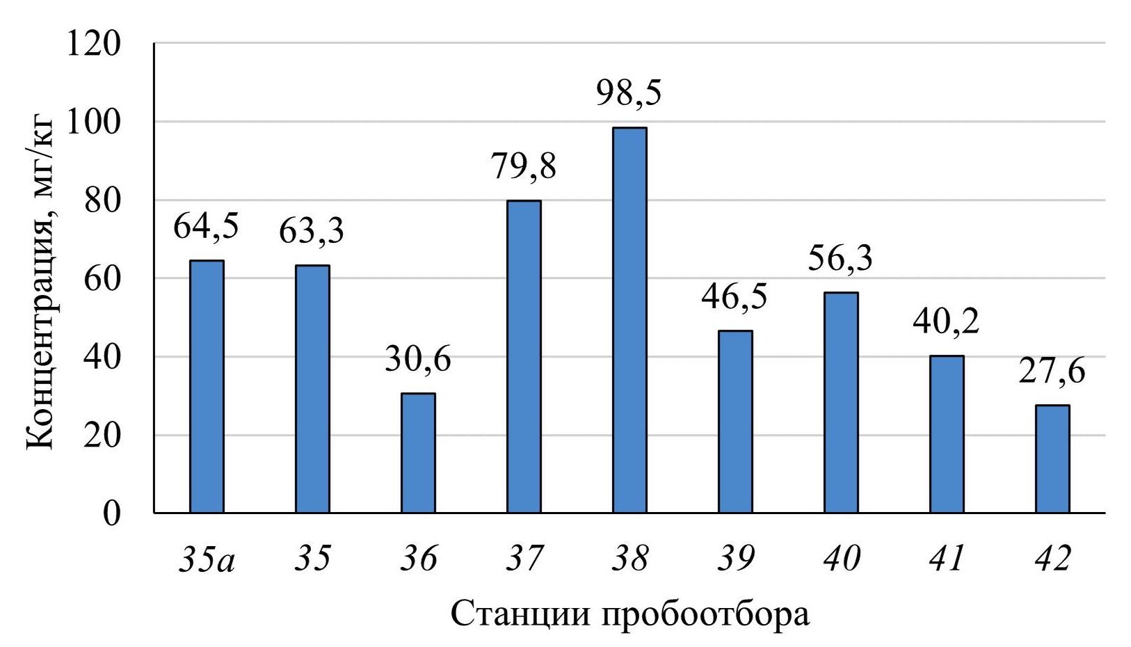 3. F i g. 2. Concentrations of hydrocarbons in the bottom sediments of Kamyshovaya Bay