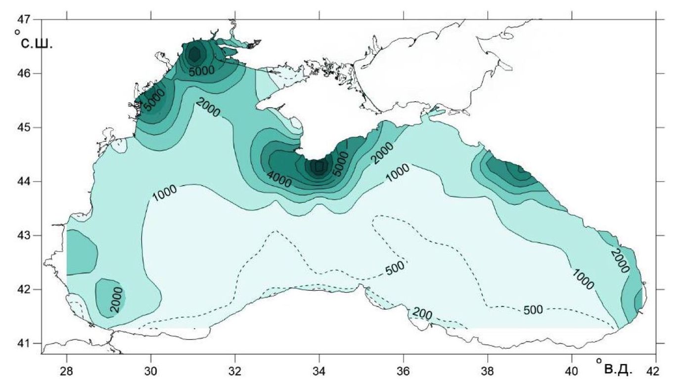 11 Климатический атлас Черного моря (МГИ-2024) : набор данных. Данные в формате netCDF // Банк океанографических данных : сайт. 01.01.2025. URL: http://bod-mhi.ru/ru/climaticAtlas_2024.shtml (дата обращения: 31.12.2024).