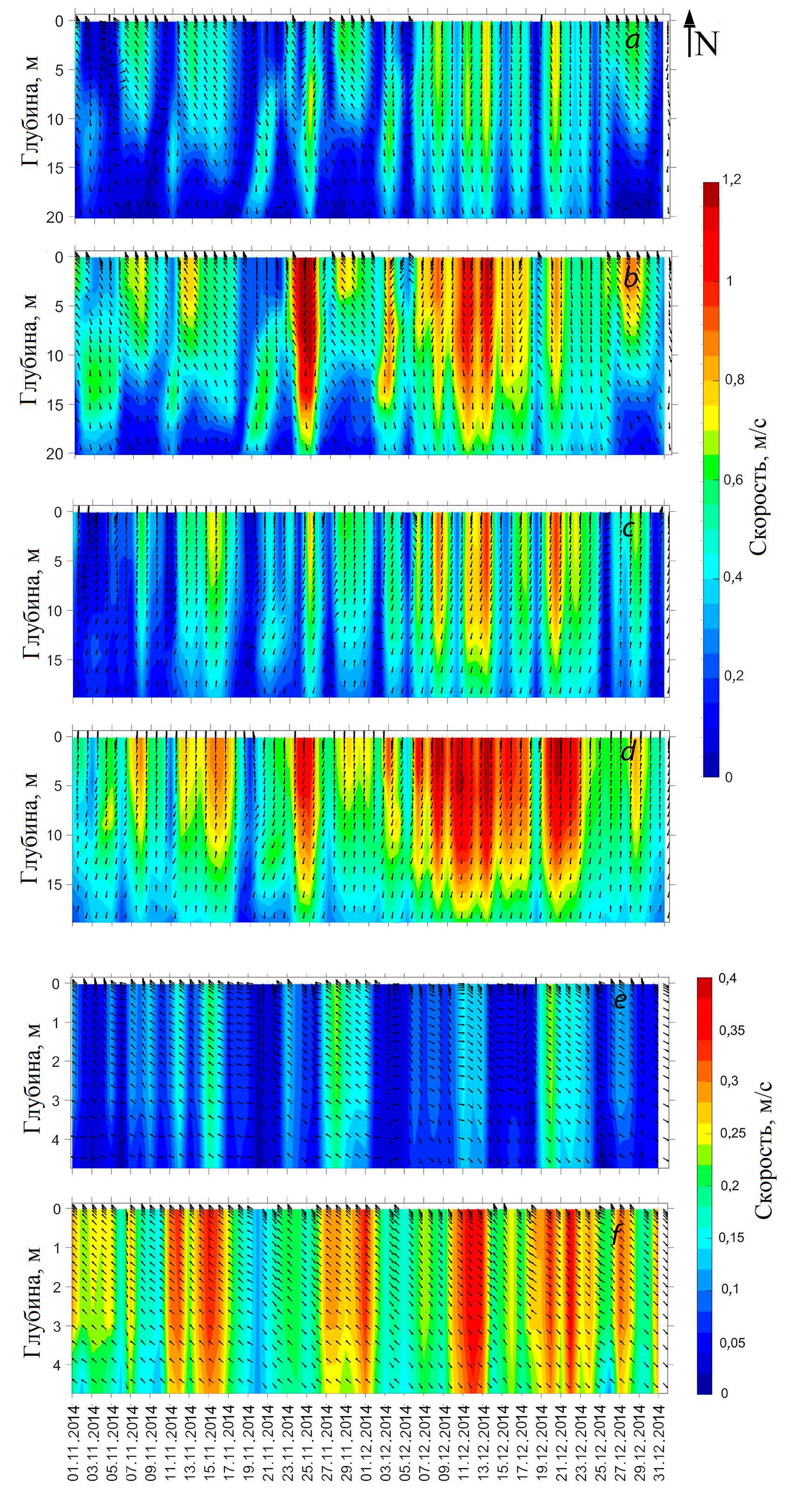Кроме этого, оценивались максимальные модули скорости течений max.