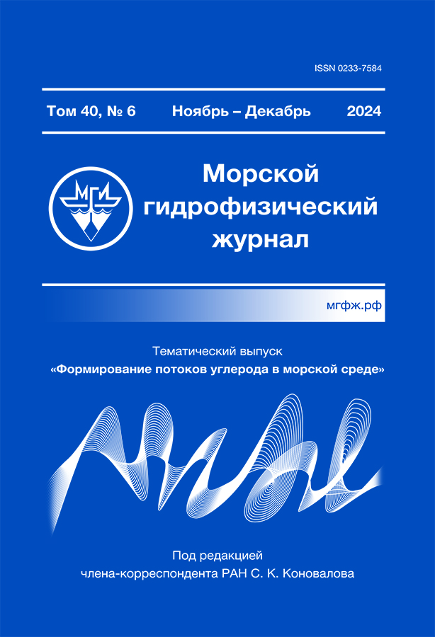Выводы. Динамика потока ВВ и углерода определяется различными процессами, включая физические и биогеохимические. Потоки ВВ имеют неоднородное распределение по глубине и характеризуются сезонной изменчивостью. Анализируя данные интегральных ловушек, можно отметить, что поток ВВ изменяется в пределах 62–99 мг·м‒2·сут‒1 на различных глубинах. На глубинах 218 и 1568 м поток ВВ достигает пиковой интенсивности. Его снижение зависит от различных биогеохимических процессов – растворения, окисления и минерализации. В свою очередь, увеличение потока ВВ может быть связано как с глубинными течениями, так и с физико-химическими процессами сорбции. Сезонные изменения потока ВВ представлены двумя пиками – максимумом в период с июля по сентябрь и минимумом в марте. Концентрация углерода во ВВ также меняется в зависимости от глубины и сезонного хода, который в основном определяется биологическими процессами. Отставание между пиками «цветения» кокколитофорид на поверхности и максимальными значениями потока неорганического углерода, зафиксированного ловушкой, может объясняться скоростями осаждения.