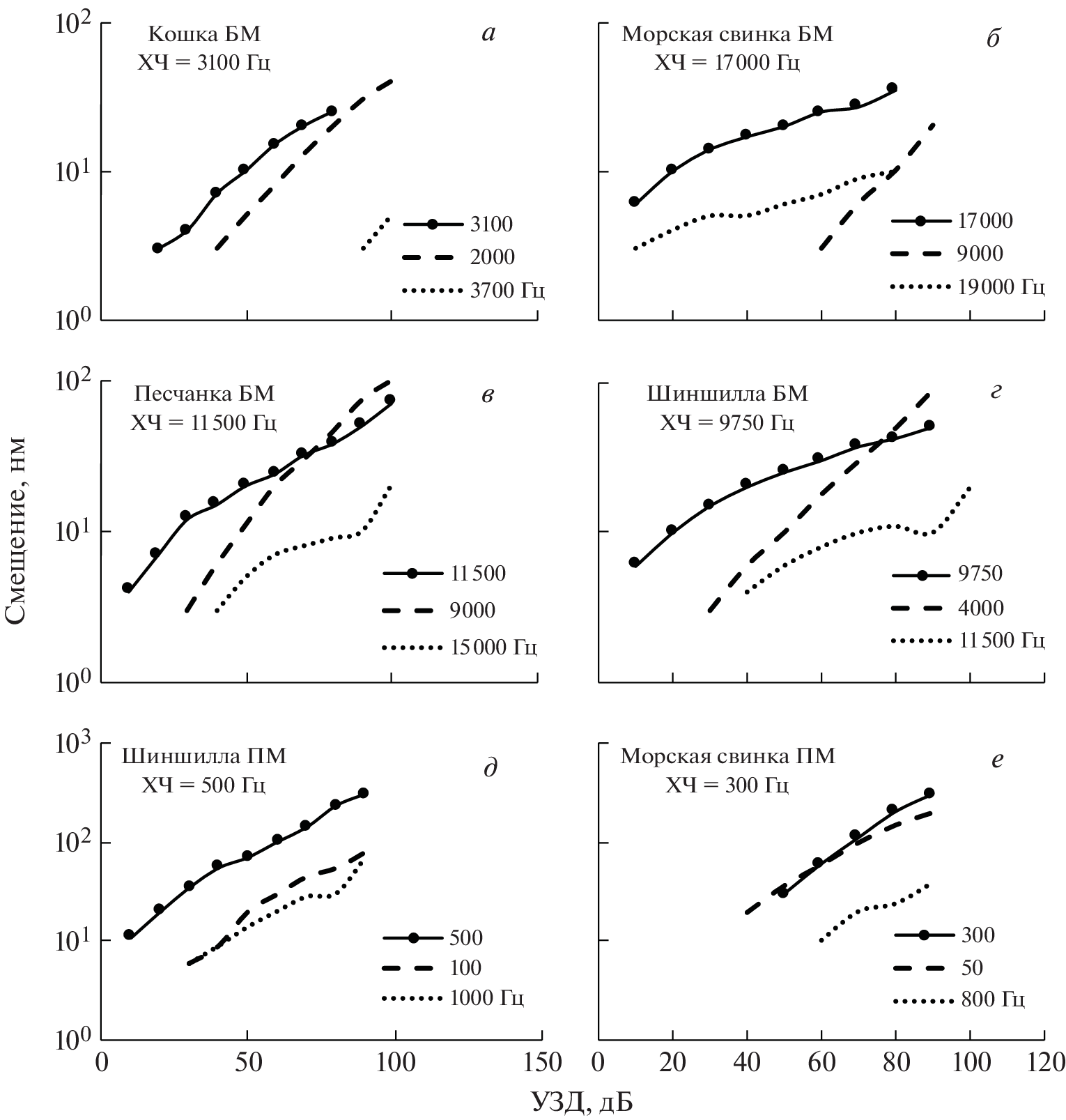 - Rhode W.S., Recio A. Study of mechanical motions in the basal region of the chinchilla cochlear. J. Acoust. Soc. Am. 2000. V. 107. P. 3317–3332.