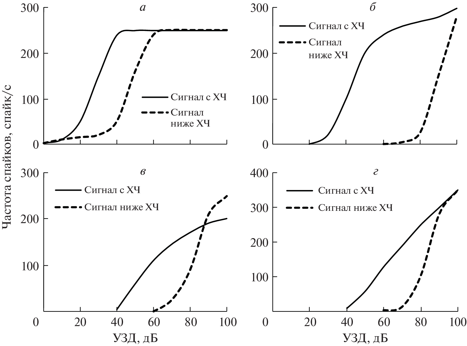 - Cooper N.P., Yates G.K. Nonlinear input-output function derived from the responses of guinea-pig cochlear nerve fibers: variations with characteristic frequency. Hearing Research. 1994. V. 78. P. 221–234.