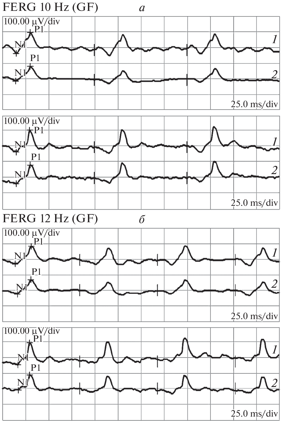 - Kondo M., Sieving P.A. Primate photopic sine-wave flicker ERG: vector modeling analysis of component origins using glutamate analogs. Invest Ophthalmol Vis Sci. 2001. V. 42 (1). P. 305–312.