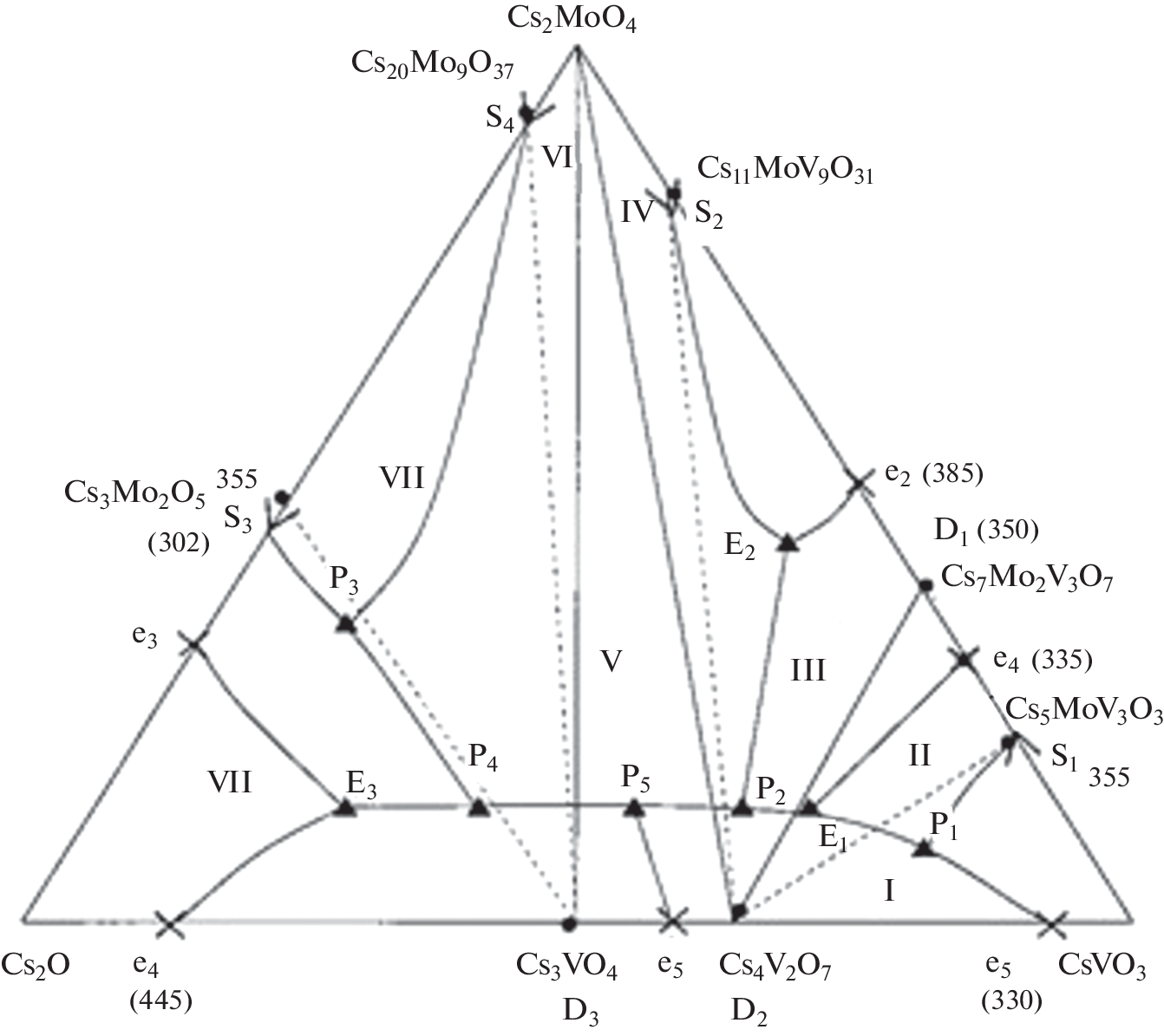 Тройная оксидная система CsVO3–Cs2MoO4–Cs2O