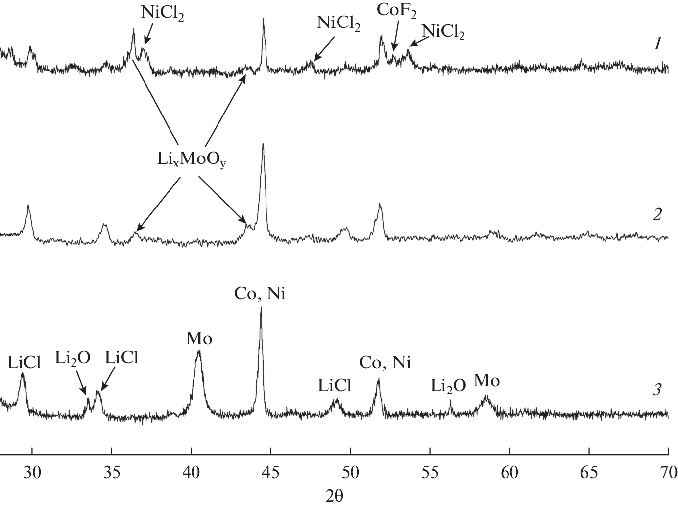 Электровосстановление смесей хлорида никеля(II), фторида кобальта(II) и оксида молибдена(VI) в термоактивируемом химическом источнике тока