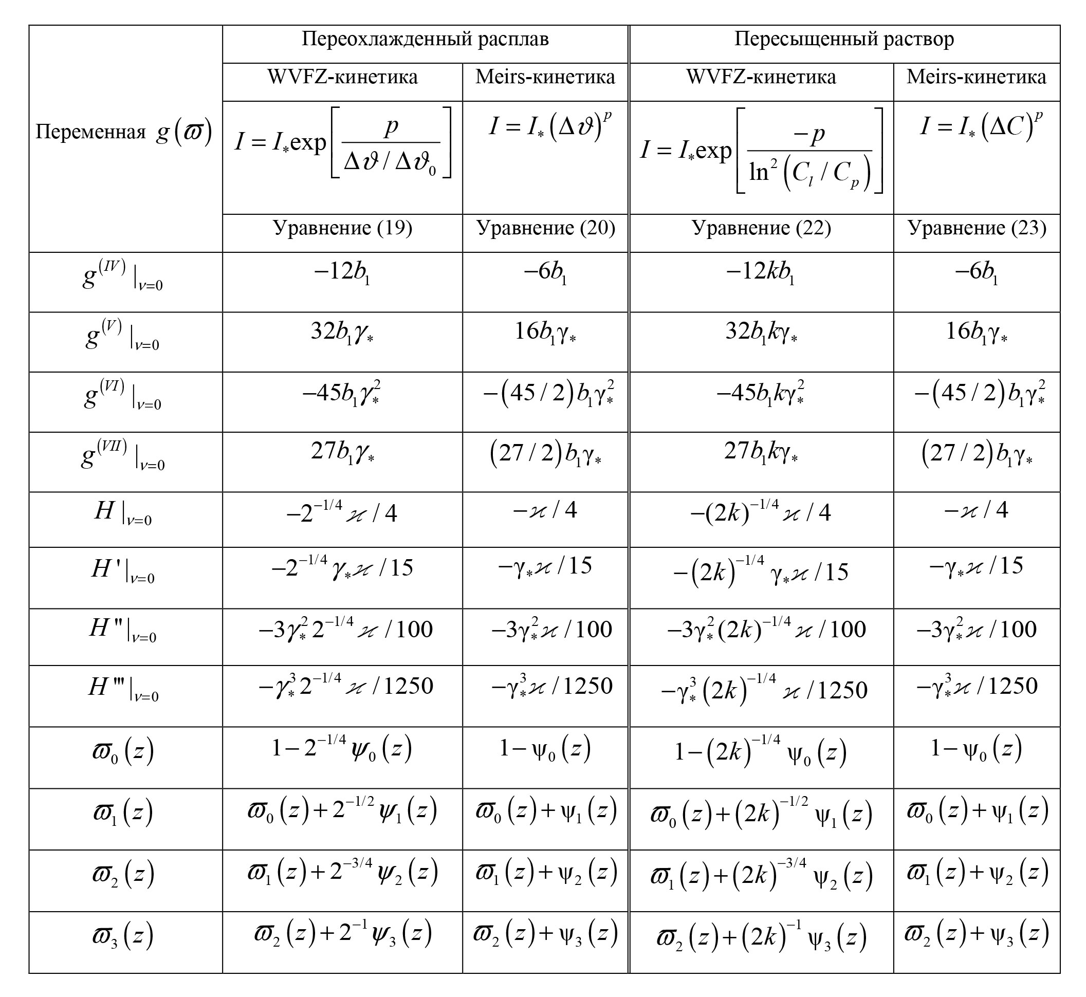 Аналогично уравнению (19) для переохлажденных расплавов из уравнения (7) получаем следующее выражение для пересыщенных растворов, используя кинетику WVFZ [33]: