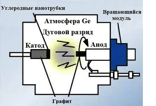 Рис. 5. Схема установки для синтеза НЧ-ВЭС методом дугового разряда [73]