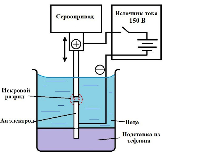 Рис. 6. Схема синтеза НЧ-ВЭС методом искрового разряда на постоянном токе [78].