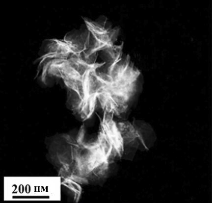 Рис. 7. Изображение микроструктуры НЧ-ВЭС PtCoMoPdRh, имеющей вид «эластичного наноцветка», полученное с помощью высокоугловой кольцевой сканирующей просвечивающей электронной микроскопии в темном поле (high-angleannular dark-field scanning transmission electron microscope, HAADF-STEM) [85]
