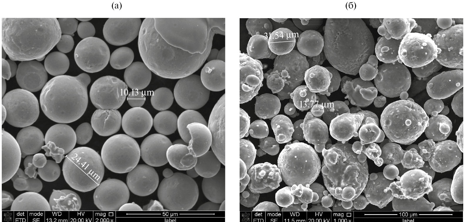 Рис. 1. Микрофотографии порошков: а – 12Х18Н10Т; б – AlSi10Mg.