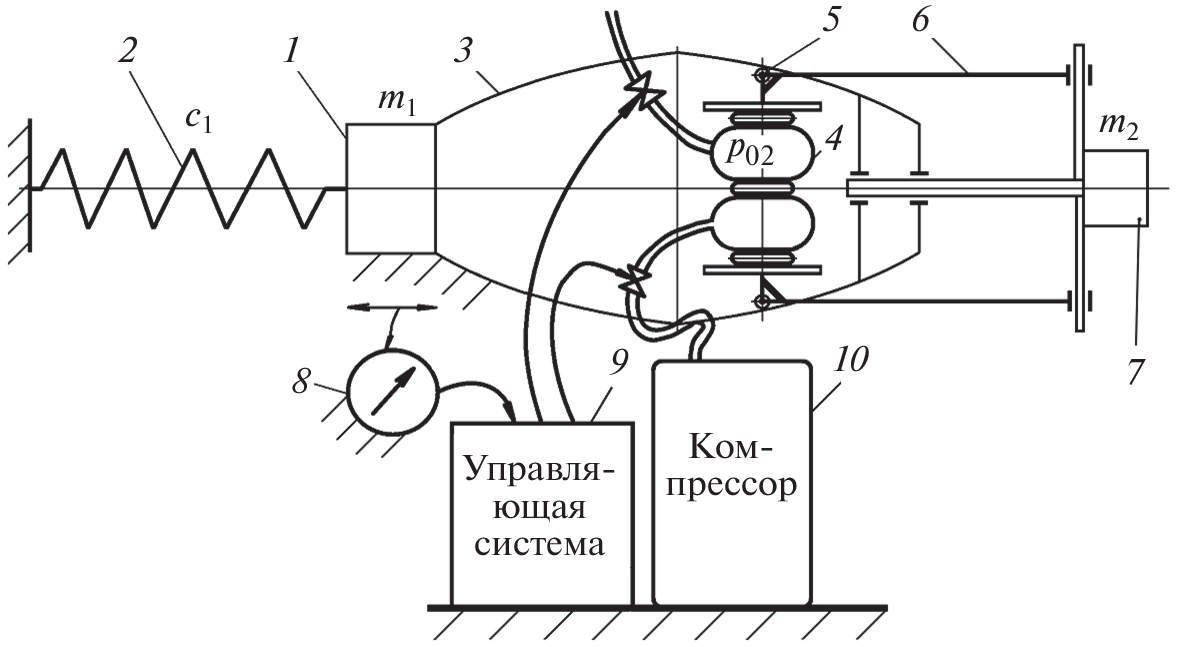 Статья посвящена разработке динамического гасителя колебаний, представляющего собой систему, в которой пневмопружина перемещается между направляющими заданной формы перпендикулярно их оси симметрии. Форма направляющих определяется из условия, что характеристика динамического гасителя – линейная, что эквивалентно пружине с заданной жесткостью. Основным недостатком большинства современных динамических гасителей является то, что они эффективны при работе только на определенной частоте вынуждающей силы, действующей на защищаемый объект. При небольшом изменении этой частоты, амплитуда защищаемого объекта может многократно возрасти. В статье доказано, что, изменяя расчетным образом давление в пневмопружине предлагаемого гасителя, можно получить заданную жесткость динамического гасителя, при которой он эффективен при различных частотах вынуждающей силы.