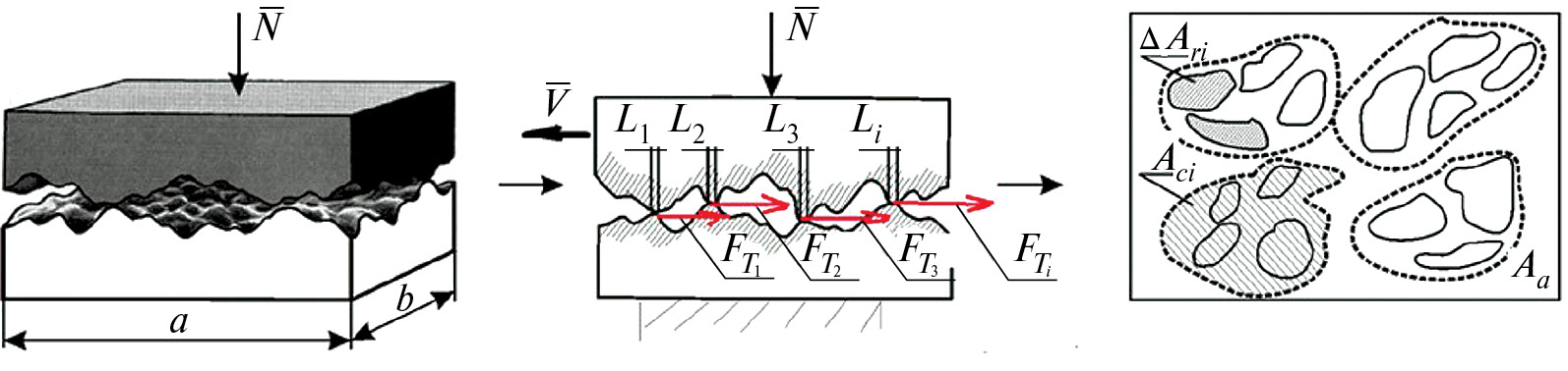 Современная теория контактного взаимодействия соприкасающихся тел, являющаяся предметом изучения науки, именуемой ТРИБОЛОГИЯ, получившая развитие в работах И. В. Крагельского, Н. Б. Демкина, А. В. Чичинадзе, Ю. М. Лужнова и их учеников, считает контакт взаимодействующих тел дискретным, т. е. точечным, и состоящим из множества точечных контактов, обусловленных взаимодействием выступов микрошероховатостей площадок контакта взаимодействующих тел [2, 4–6].
