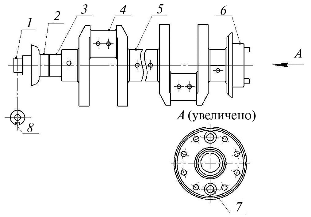 На рис. 2 и в табл. 1 представлены основные технические требования, предъявляемые к коленчатым валам дизельного двигателя ЯМЗ-236.