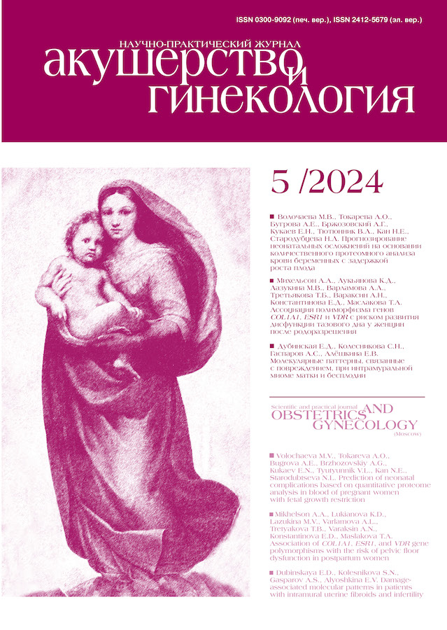 Materials and methods: This prospective cohort study enrolled 120 women who delivered naturally. The patients were divided into two groups. Group 1 (study group) consisted of 67 women who developed pelvic floor dysfunction, such as pelvic organ prolapse and urinary incontinence, six months postpartum. Group 2 (control group) included 53 women who did not develop pelvic floor dysfunction within six months postpartum. Molecular genetic typing and determination of COL1A1 gene polymorphisms -1997 C>A and 1546 G>T, ESR1 gene -397 T>C and -351 G>A, and VDR gene 283 A>G and 2 A>G were conducted for all women.