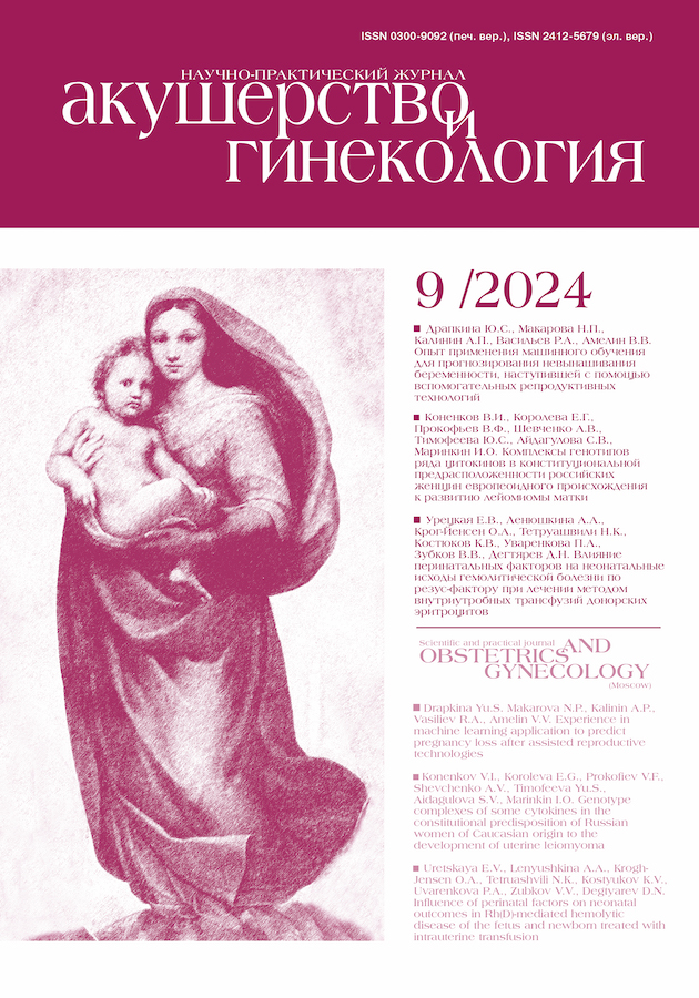 Relevance: Machine learning (ML) method of data analysis makes it possible to thoroughly analyze the predictors of pregnancy loss after assisted reproductive technologies (ART). Prediction of live birth rate in ART program can be made using traditional mathematical models. However, ML enables to discover hidden patterns in nonlinear relationships and determine additional correctable factors.