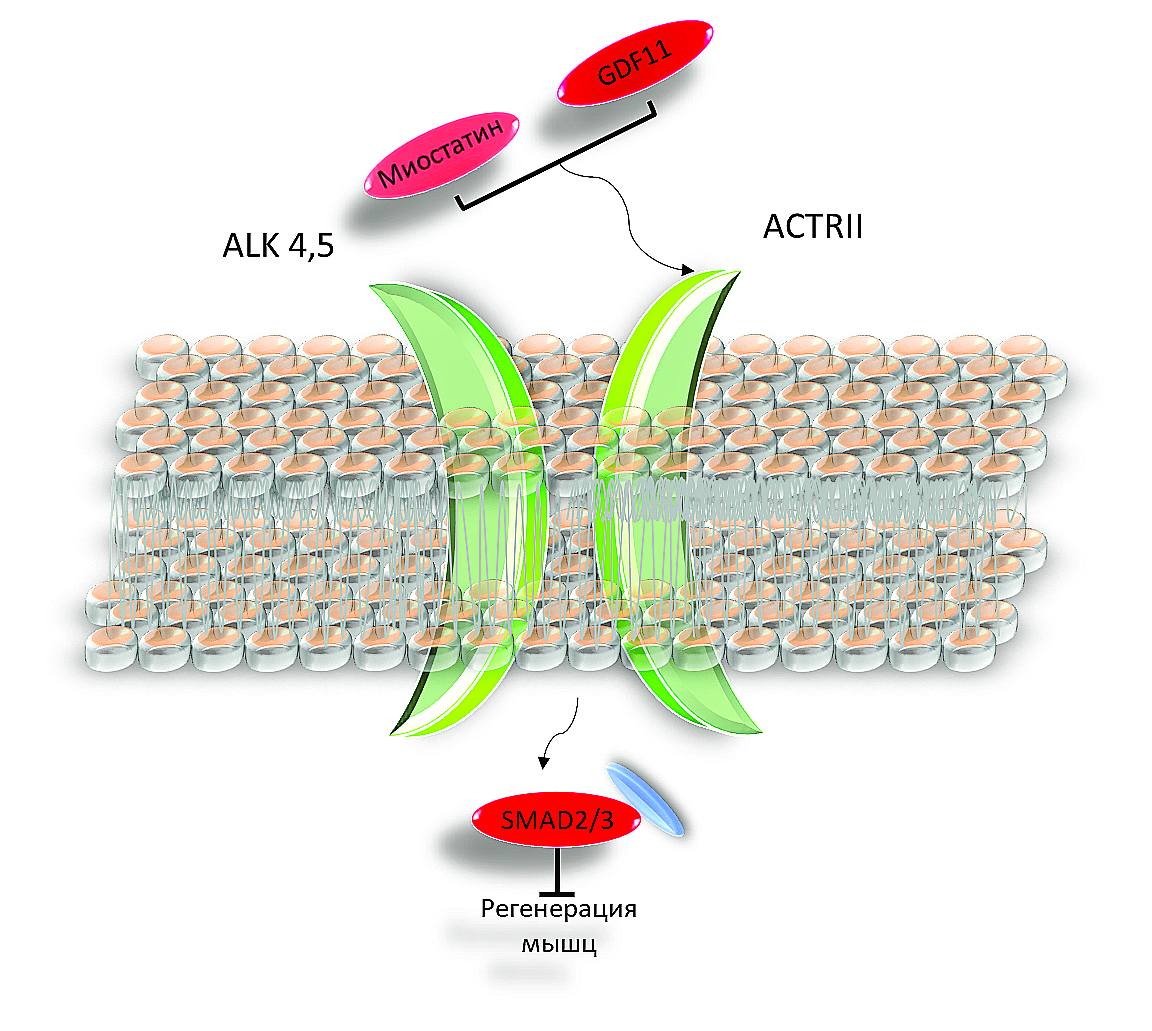 Таким образом, если принять, что GDF11 отрицательно влияет на рост и регенерацию мышц и его концентрация растет с возрастом, следует ожидать негативные последствия от применения GDF11 у пожилых пациентов [30]. Применение этого фактора с терапевтической целью весьма затруднительно, поскольку активируемый им сигнальный путь ингибирует регенерацию мышц.