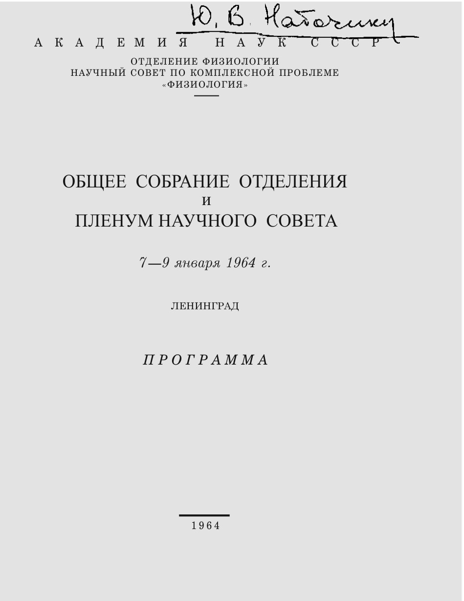 3. Fig. 2. Program of the General Meeting of the Department of Physiology and the Plenum of the Scientific Council.