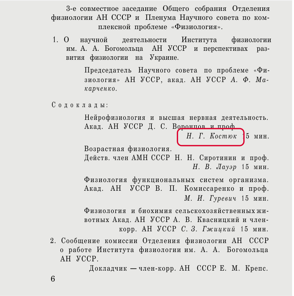 8. Fig. 7. Report of Prof. P.G. Kostyuk at the meeting of the Department of Physiology of the USSR Academy of Sciences.