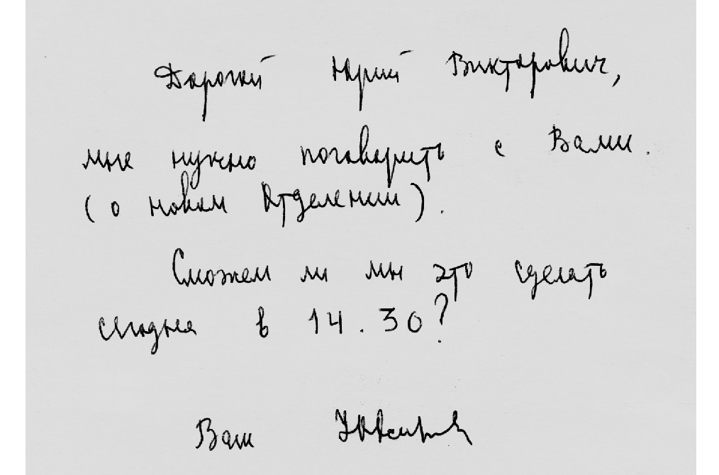 12. Fig. 11. Note from Yu. S. Osipov to Yu. V. Natochin, 2010.