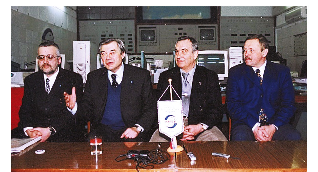 Рис. 7. Пресс-конференция, посвященная 100-летию со дня рождения академика В.В. Парина, Центр управления медицинским обеспечением космических полетов ИМБП. Слева направо: В.А. Логинов (внук В.В. Парина), академик А.И. Григорьев, врач-космонавт В.В. Поляков, врач-космонавт Б.В. Моруков.