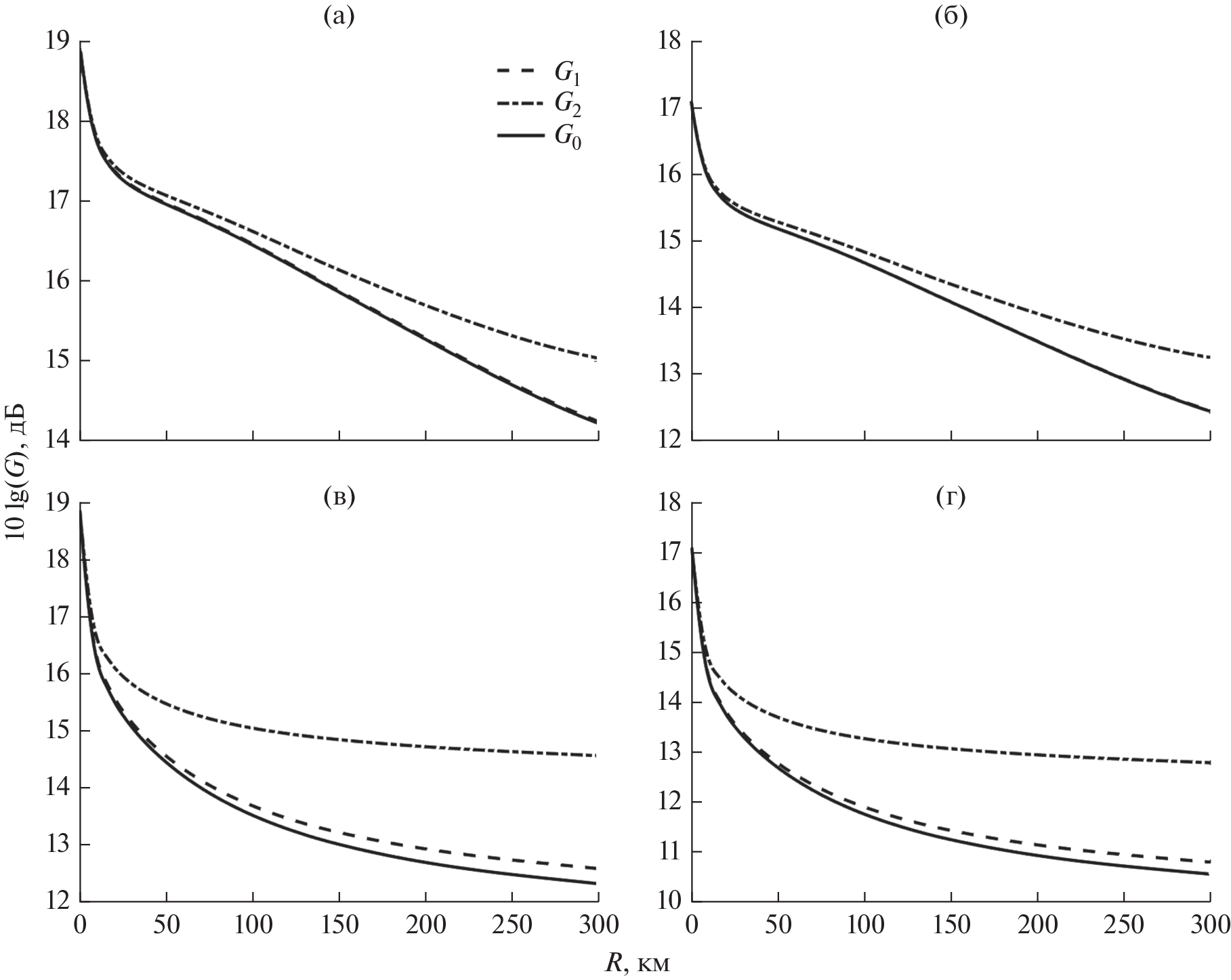 Исследуется влияние корреляционных характеристик шума, генерируемого ветровыми источниками, на эффективность пространственной обработки сигналов, принимаемых горизонтальной антенной решеткой в океанических волноводах со взволнованной поверхностью. Проанализированы коэффициенты усиления антенны для трех методов пространственной обработки: стандартного метода ФАР, метода оптимальной линейной обработки и метода оптимальной квадратичной обработки. Приведены результаты численного моделирования для гидрологических условий Баренцева моря и Тихого океана в зимний период. Основное внимание уделяется зависимости коэффициента усиления антенны от расстояния до источника. Проводится сравнение коэффициентов усиления антенны, рассчитанных с использованием модели ветрового шума и традиционной модели шума, некоррелированного на ее элементах.