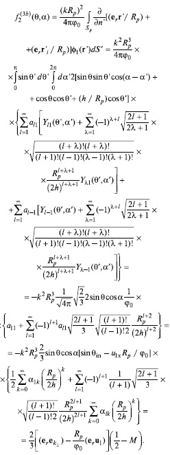 Если φin(r) – плоская волна φin(r) = φmexp[i(kr)– iωt], распространяющаяся в направлении ek = k/k, то φ0n(r)/φm = [(ekr)Rp–1]n + [(ekri)Rp–1]n. В сферической системе координат, связанной с центром частицы, .
